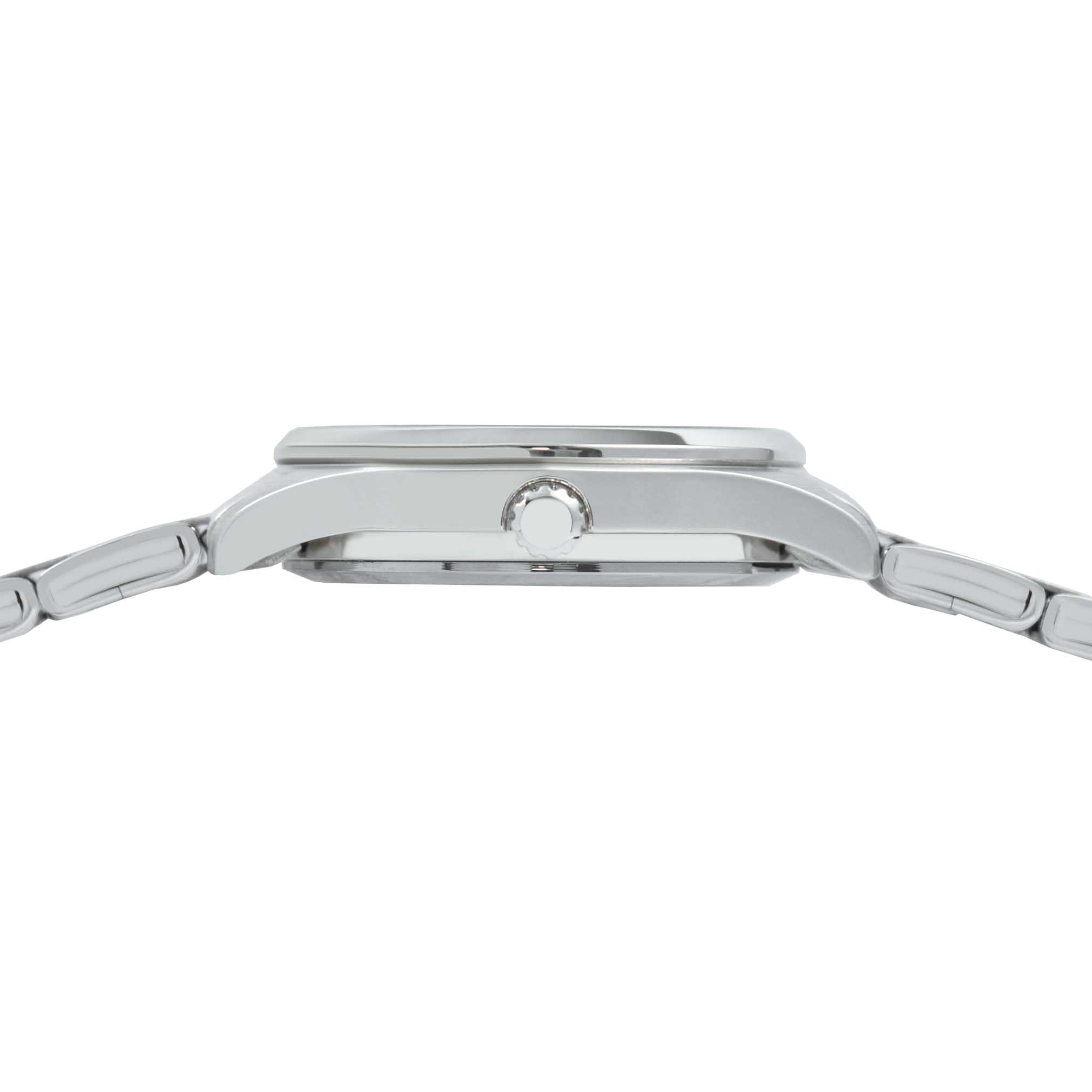 Enjoy minimalist elegance with this watch from the Lorus Women’s Collection. The silvery-white sunray dial is complemented by simple hour markers with blue hands and a sleek Stainless steel bracelet for understated versatility. With a water resistance of up to 50 metres, this classic piece combines style and practicality.