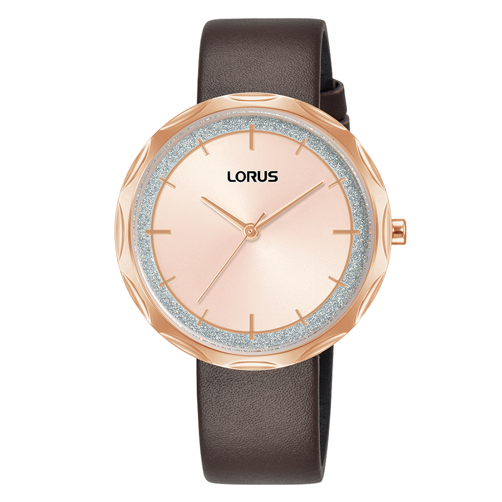 Lorus Ladies’ Rose Gold tone & Brown leather ‘Fluted Shimmer’