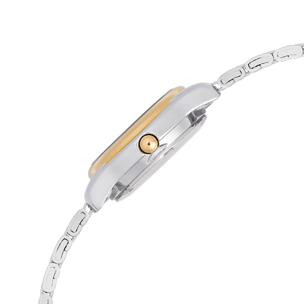 The durable gold colour accented case and multi-row flexible bracelet complement the overall design – ideal for both formal and casual occasions.