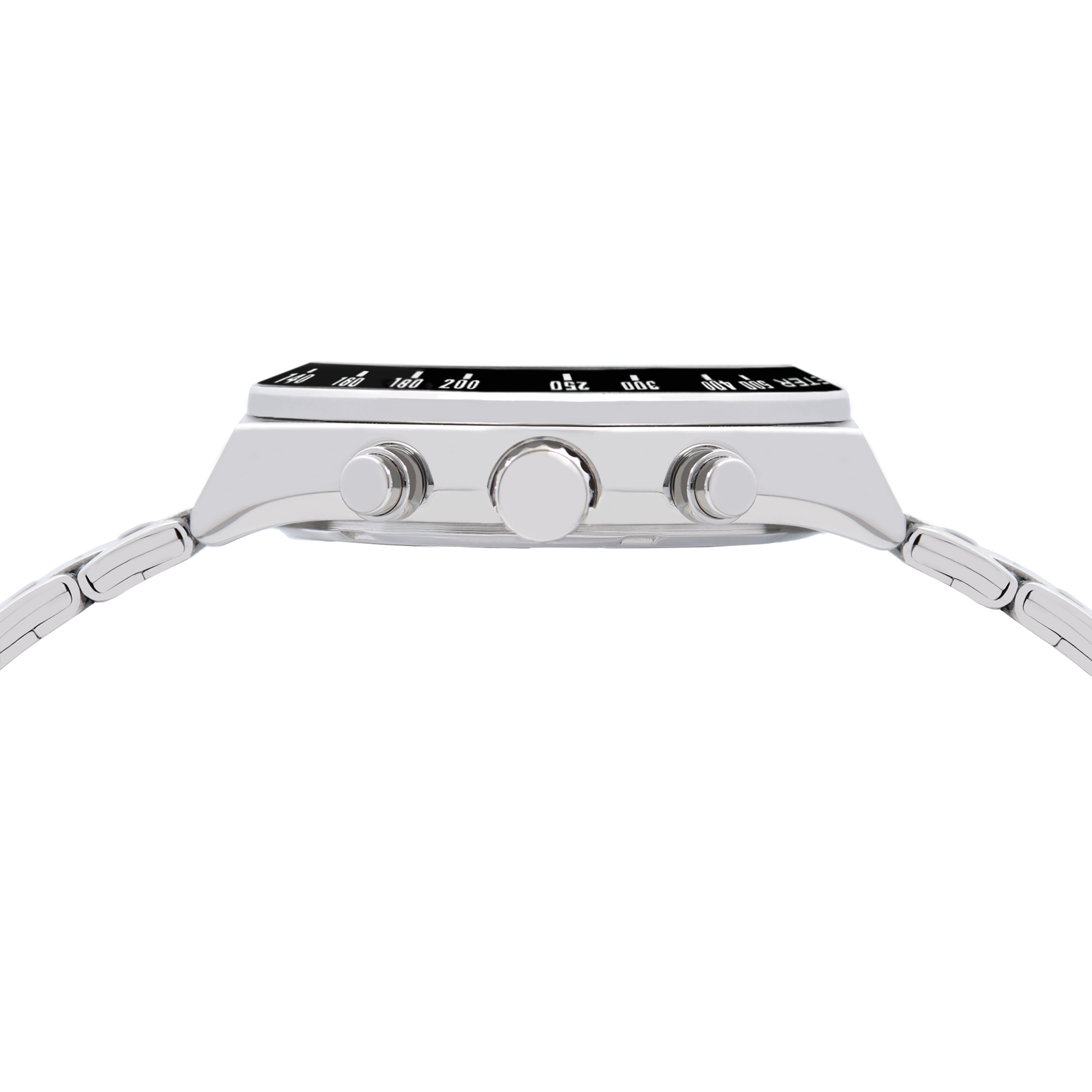 This Lorus Men’s Solar Chronograph combines reliable functionality with a bold design. The blue dial and contrasting black bezel with a stainless steel bracelet, offer a modern and dynamic look. Powered by any light source, for low maintenance wear. The luminous hands and markers provide clear visibility, even in low light. The chronograph function is designed for precise time measurement and has a tachymeter to calculate speed based on elapsed time over a known distance. With a water resistance up to 100 metres, it is ideal for swimming or everyday activities.